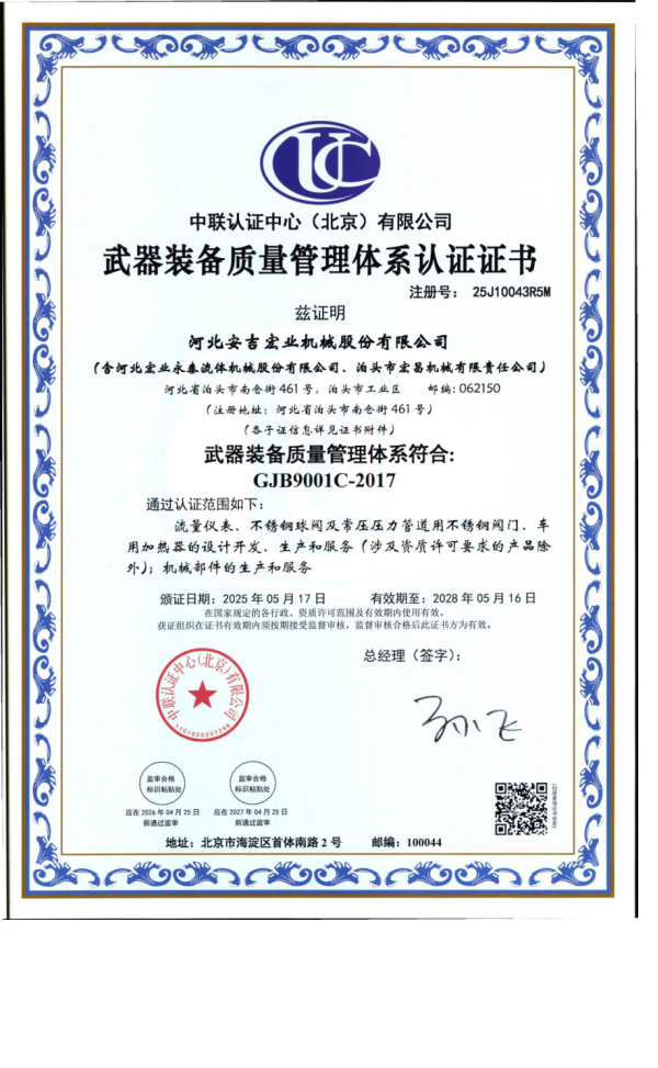 河北宏業(yè)永泰流體機械股份有限公司(原泊頭儀表總廠),生產(chǎn)流量儀表產(chǎn)品有三十多年的歷史。參加了節(jié)流裝置國家標準GB/T2624-1981的起草工作。公司占地12萬平方米,注冊資金3500萬元。主要產(chǎn)品有節(jié)流裝置、儀器儀表、各類不銹鋼閥門、各種化工離心泵。公司取得了ISO9001:2015質(zhì)量體系認證、挪威船級社CE認證、出口產(chǎn)品Emark認證、特種設備制造許可證等。同時河北宏業(yè)永泰還是中石化物資供應商網(wǎng)絡成員,取得了中石油、中海油物資供應商準入證,是中國神華集團、華電集團、大唐集團、中廣核等公司合格供應商。產(chǎn)品出口日本、阿爾及利亞等國家。